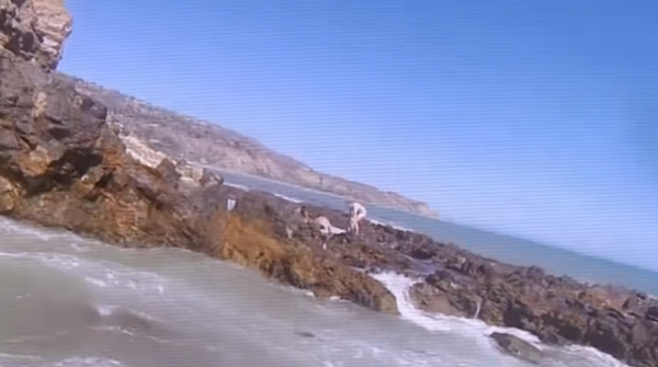 Alors que le groupe se tenait sur les rochers au-dessus de la crique, un jeune adolescent qu’ils ne connaissaient pas est tombé dans les vagues moussantes. Presque immédiatement, l’adolescent est devenu inconscient et a été complètement balayé par le fort courant.