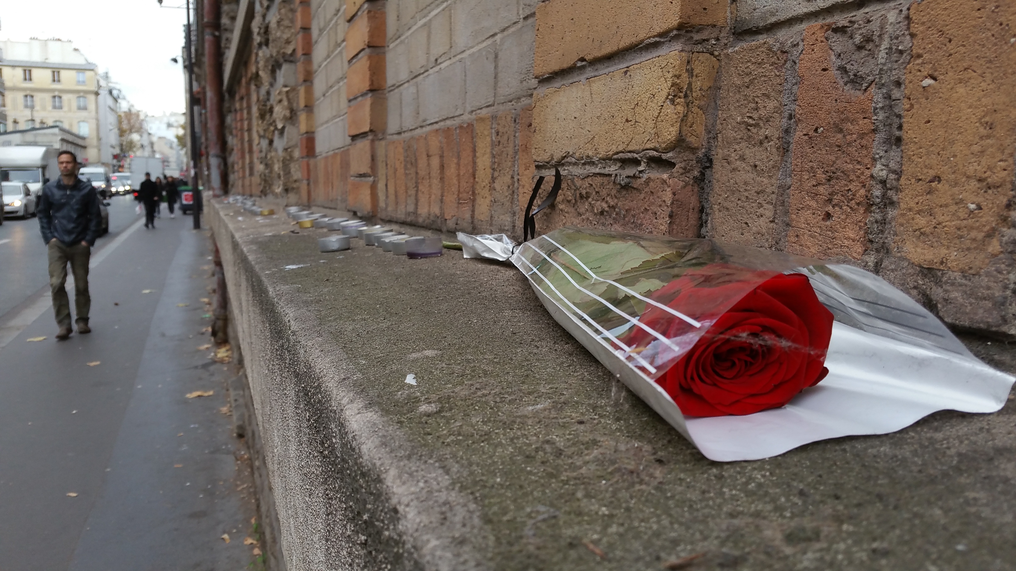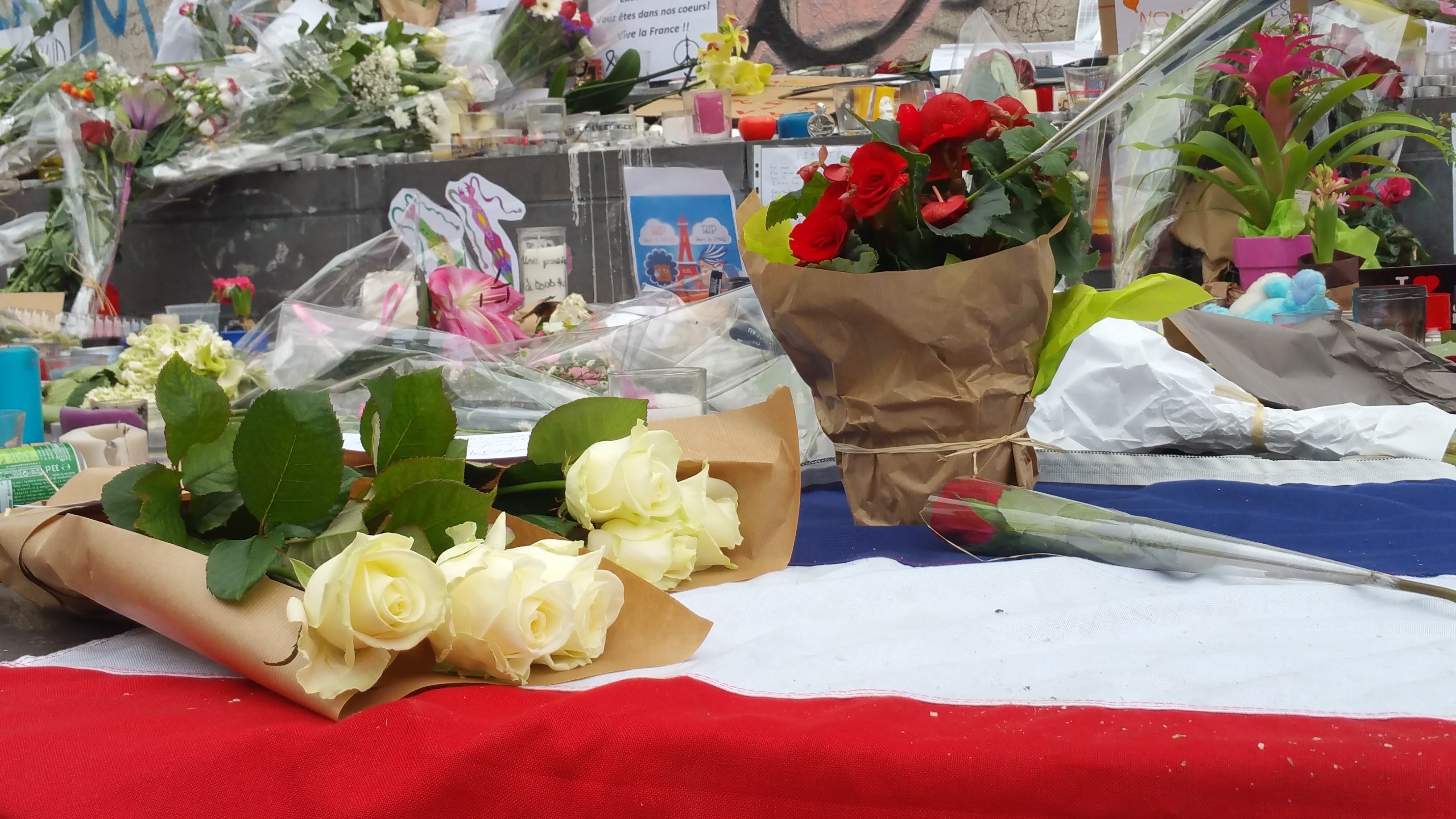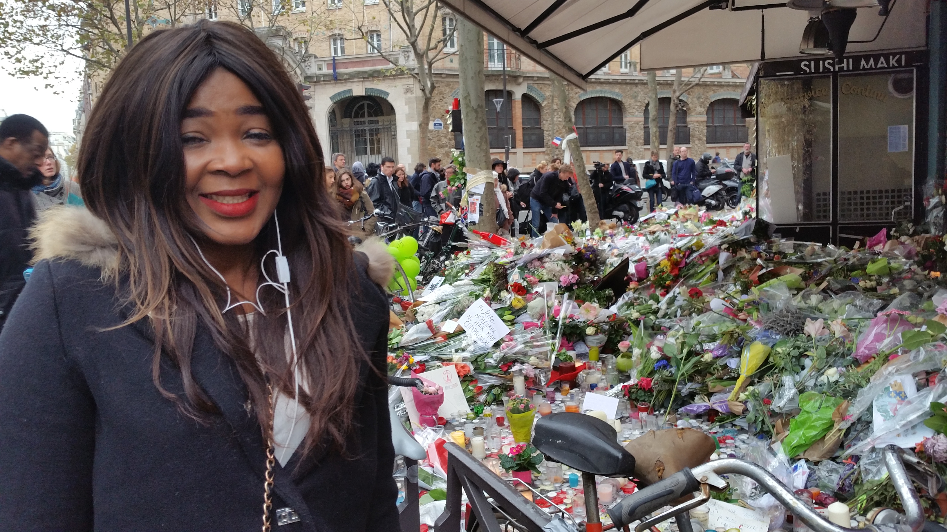 Sur la vitre criblée des balles des terroristes, des passants ont glissé des roses et des tulipes. Des dessins d’enfants sont déposés sur des monticules de bouquets. « Il n’y a pas de mots… on se met à la place des familles, on se met à la place des gens qui étaient là, qui n’ont rien pu faire. On ne sait pas ce qui va se passer dans les jours à venir. On va vivre dans la peur. Mais est-ce qu’on peut vivre comme ça ???! On a perdu un cousin, un ivoirien vigile, qui travaillait au Bataclan. »