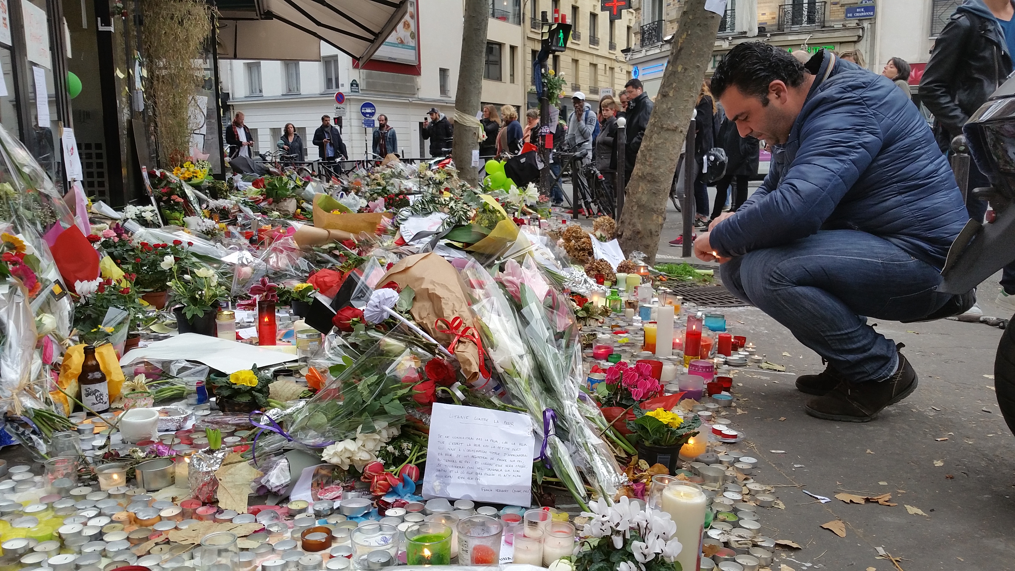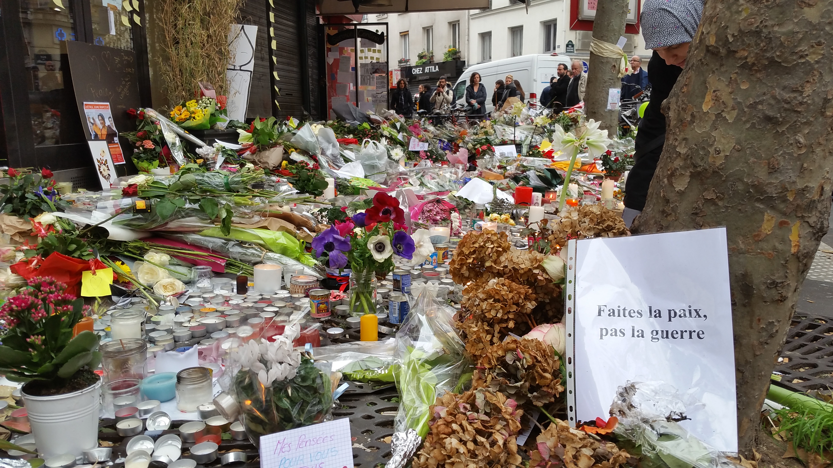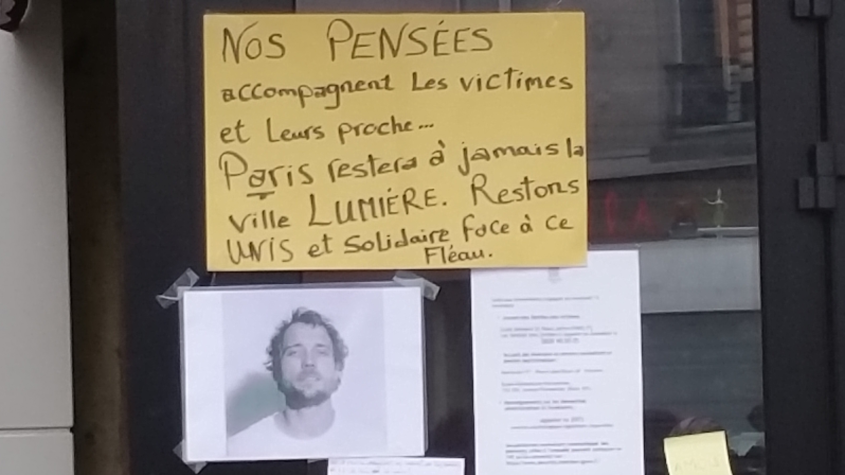 Sur la vitre criblée des balles des terroristes, des passants ont glissé des roses et des tulipes. Des dessins d’enfants sont déposés sur des monticules de bouquets. « Il n’y a pas de mots… on se met à la place des familles, on se met à la place des gens qui étaient là, qui n’ont rien pu faire. On ne sait pas ce qui va se passer dans les jours à venir. On va vivre dans la peur. Mais est-ce qu’on peut vivre comme ça ???! On a perdu un cousin, un ivoirien vigile, qui travaillait au Bataclan. »