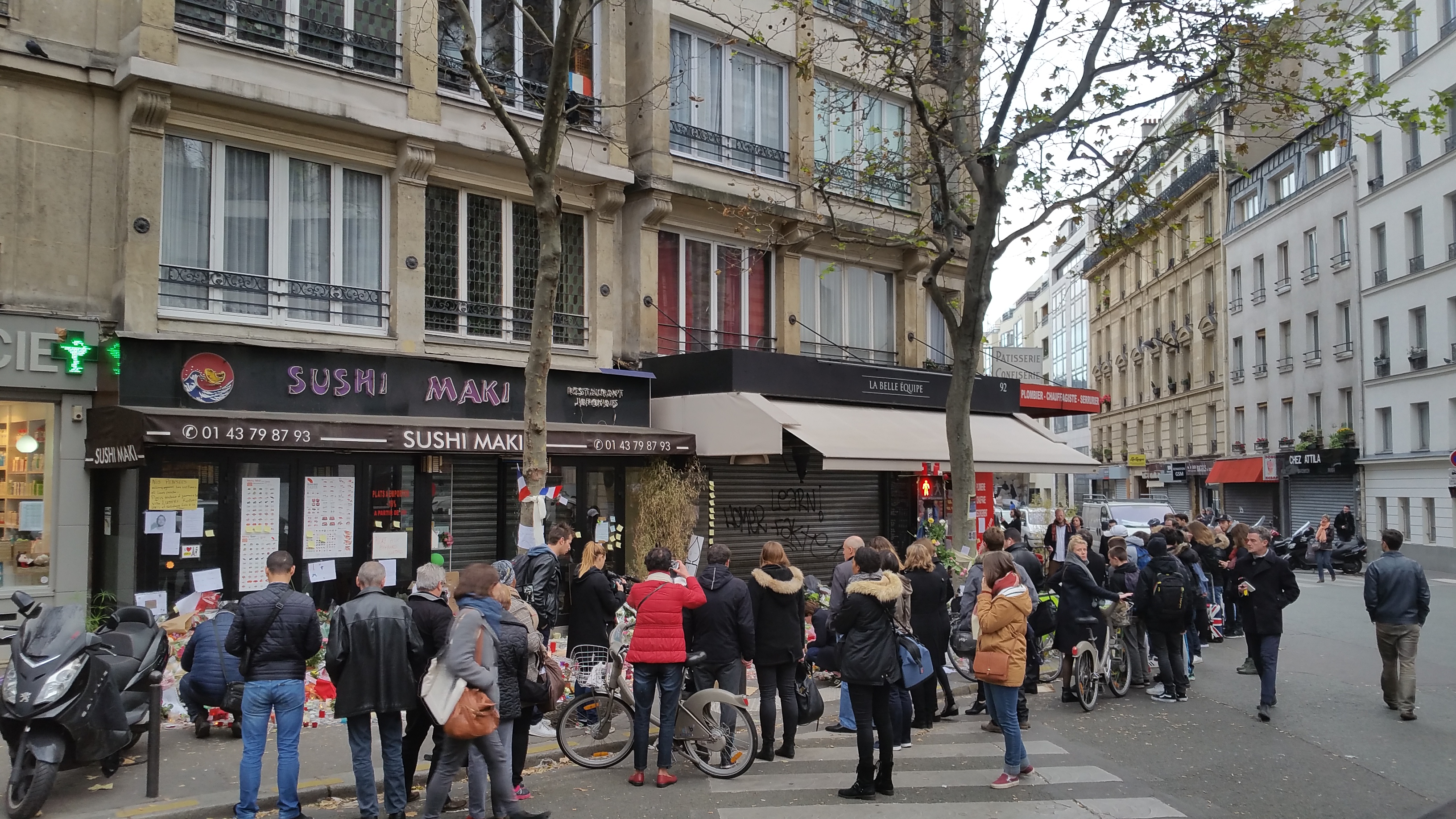 Au 90 rue de Charonne, l’émotion est encore très forte devant le bar « La Belle Équipe ». Tout le monde ici connaissait quelqu’un qui a vu ce qui s’est passé –et beaucoup connaissaient quelqu’un qui est mort vendredi soir. Mohammed Elkrif, la soixantaine, peine à se remettre de ce qu’il a vu. « Quand il y a un anniversaire, dans ce bar, tout le monde vient le fêter. Cette fois ci, c’était l’anniversaire de Myriam, la patronne. Il y avait un monde fou. J’ai parlé au patron du magasin juste à côté du bar où il y a eu les tirs. À 19h30, je lui disais « tu va fermer ? » Il m’a dit « Après la prière, je fermerai ». Je l’ai ensuite rappelé, je lui ai demandé de fermer et de venir. Il a donc quitté son magasin à 21h30. A 21H37, ça a pété ».