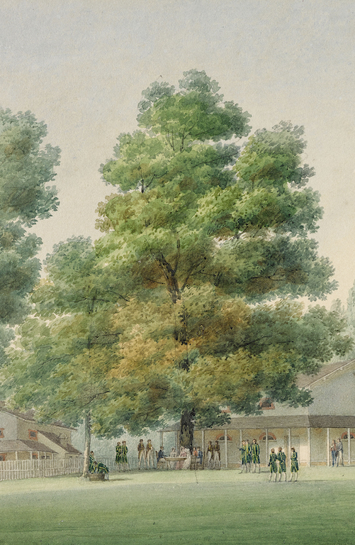 Redouté peint les roses et les pivoines mais la mission de représenter les lieux et les jardins qu’elle aimait tant est confiée au maître de dessin de sa fille Hortense – Auguste Garnerey (1785-1824).