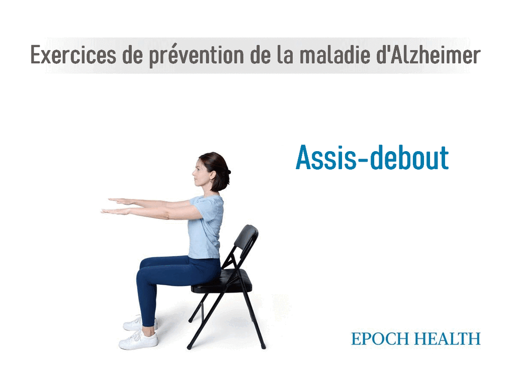 Cet exercice peut être réalisé avec les bras le long du corps, mais s’il est difficile de se lever sans perdre l’équilibre derrière soi, il faut tendre les bras devant soi pour déplacer le poids vers l’avant.