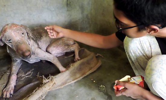 En 2015, l’équipe d’Animal Aid Unlimited au Rajasthan, en Inde, a vu un chien émacié effondré sur le bord d’une route. Il était recroquevillé en boule sur lui-même et semblait au seuil de la mort. L’équipe de secours a baptisé le chien Pushkar, ce qui signifie « Lotus » en hindi, une langue parlée en Inde.