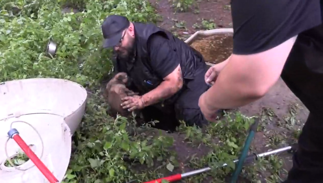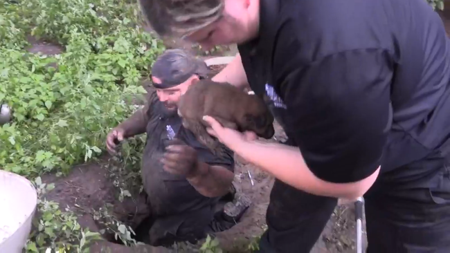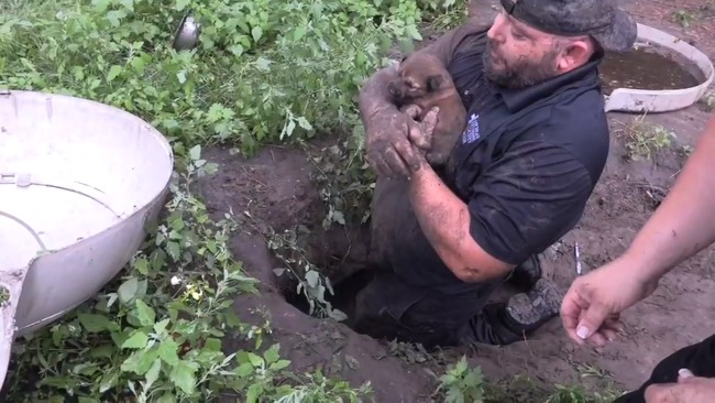 « Je n’arrive pas à croire à quel point ce trou est profond », s’exclama Chris après avoir sorti le troisième chiot.