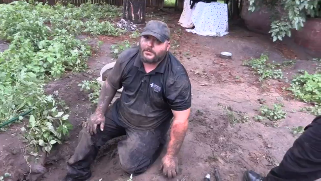 Chris a réussi à mettre 11 chiots en sécurité en près d’une demi-heure. Il était couvert de boue à la fin du processus de sauvetage.