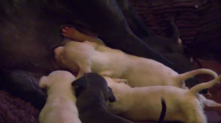 Ce fut un moment de réconfort lorsque cette famille canine a été réunie. La chienne pitbull était enfin en paix et elle a immédiatement commencé à allaiter ses petits. « Voici une bonne maman. »