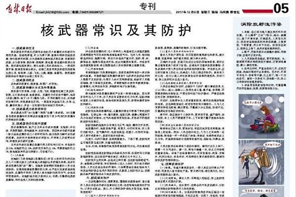 Si une attaque nucléaire se produisait près de la province chinoise du Jilin, qui partage la frontière avec la Corée du Nord, ses habitants sauront se protéger grâce à un article d’une page entière publié dans le journal officiel Jilin Daily le 6 décembre dernier.