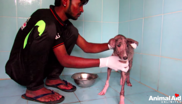 Il avait été abandonné et laissé pour mort. Une association locale d’aide aux animaux, Animal Aid Unlimited, India, a été contactée et une équipe est arrivée rapidement sur les lieux.
