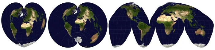 Projections de Werner, Polikonic et Goode-Homolosine. Photo ts/Epoch Times d’après Mdf, domaine public.