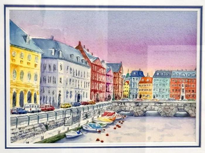 Une aquarelle signée Yuko Sherry, « Palette of a Town », lors de la même exposition à Brisbane, Australie. (Daniel Y. Teng/Epoch Times)