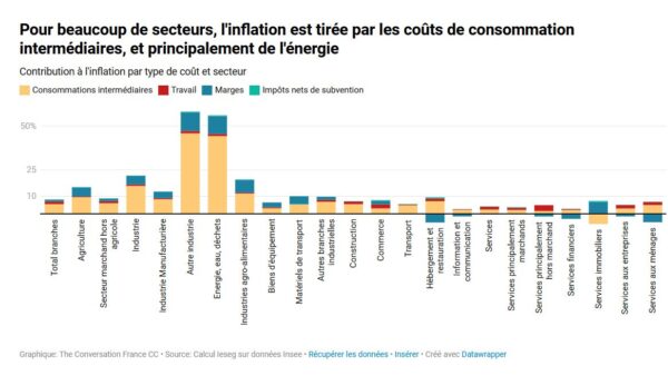 Dans la plupart des secteurs, l’énergie reste le moteur principal de l’inflation