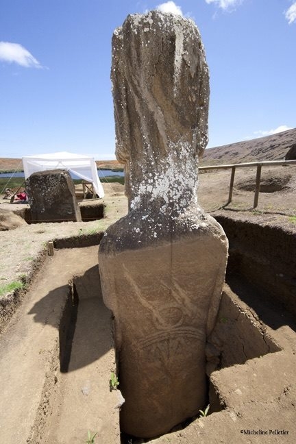 Ces statues ont été sculptées dans de la roche volcanique, et des logogrammes ont ensuite été gravés dessus. Comment ces statues ont-elles été créées, puis transportées et enterrées autour de l’île ?