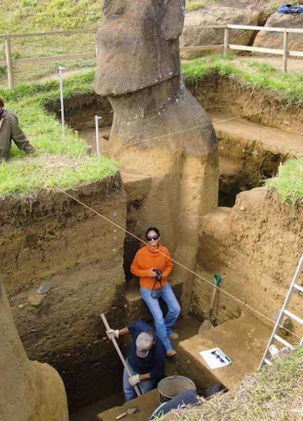 Cette image montre qu’en plus de la tête de la statue Moaï se trouve un corps complet géant, qui était caché sous terre.