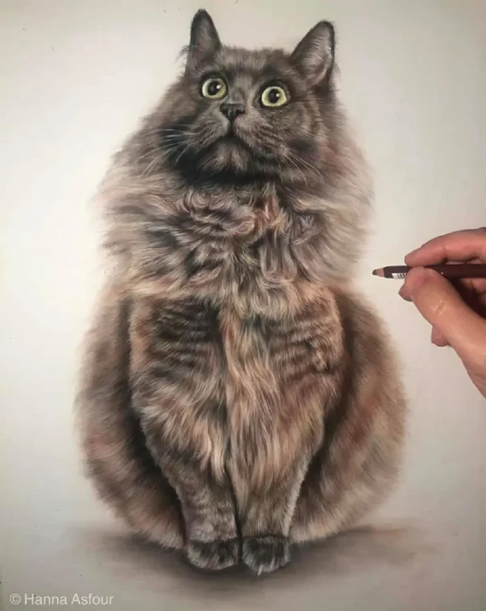 « L’un de mes portraits les plus viraux était une commande représentant un chat Maine coon, » dit-il. « Cette œuvre a touché énormément de personnes grâce à l’expression du regard : elle saisissait véritablement la personnalité de l’animal. »