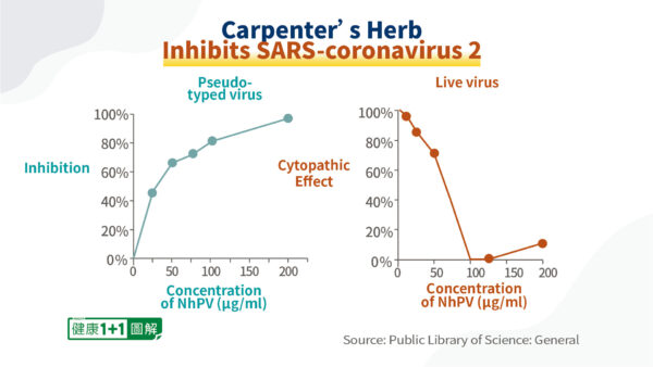 En 2021, une étude menée par des chercheurs canadiens spécialisés dans les maladies infectieuses a été publiée dans la Public Library of Science : General (PLOS ONE). Elle a prouvé que l’extrait hydrosoluble NhPV de l’herbe au charpentier peut inhiber le SRAS‑CoV‑2 et l’empêcher d’infecter les cellules.