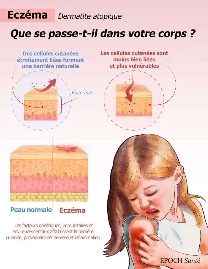 L’eczéma provoque une inflammation des cellules cutanées et endommage la barrière cutanée, entraînant sécheresse et irritation. (Epoch Times/Shutterstock)