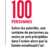 Selon les autorités, une centaine de personnes au moins se sont précipitées dans l’océan alors que l’air se chargeait de fumée noire et de cendres tourbillonnantes. Plusieurs sont demeurés dans l’eau pendant des heures, jusqu’à l’arrivée des secours.