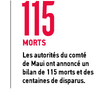 À la fin du mois d’août, les autorités du comté de Maui ont annoncé que la totalité de la ville avait été fouillée, à la recherche de restes humains. Le bilan s’élève à 115 morts et des centaines de personnes sont toujours portées disparues.