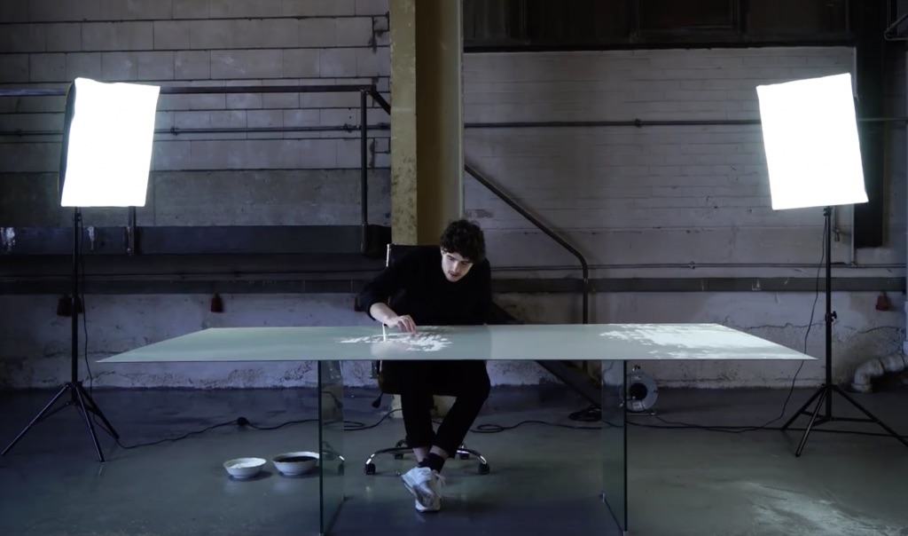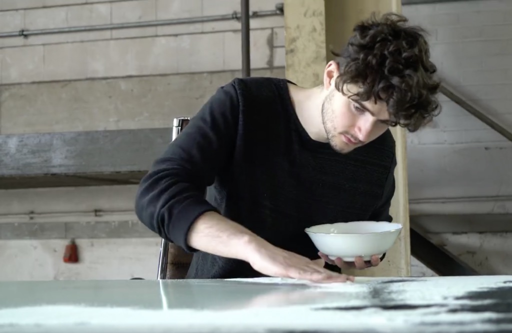 Un jeune artiste pose du sable sur une gigantesque toile. Mais quand tout s’écroule au sol, c’est l’étourdissement