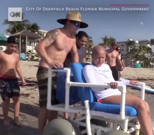 Les perspectives ne sont pas aussi prometteuses qu’au début, mais cela ne l’a pas empêchée, avec sa famille, de passer un moment incroyable sur la plage en Floride. Grâce à une légion de bénévoles du service du shérif, du service des incendies et d’un groupe d’entreprises locales, elle a pu être transportée dans l’océan sur un paddleboard pour pagayer sur l’eau.