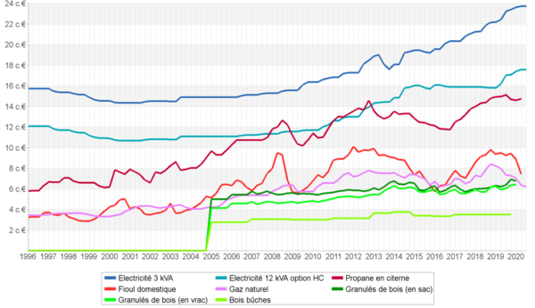 GRAPHIQUE EVOLUTION PRIX ENERGIE Source : Info énergie