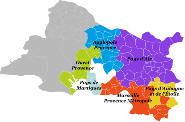 La métropole, forte de 1,85 millions d’habitants, rassemble, en effet, 93 % de la population des Bouches-du-Rhône et l’essentiel de son activité économique. Comme le montre la carte suivante, seul le Pays d’Arles n’y est pas intégré et refuse d’ailleurs catégoriquement de l’être :