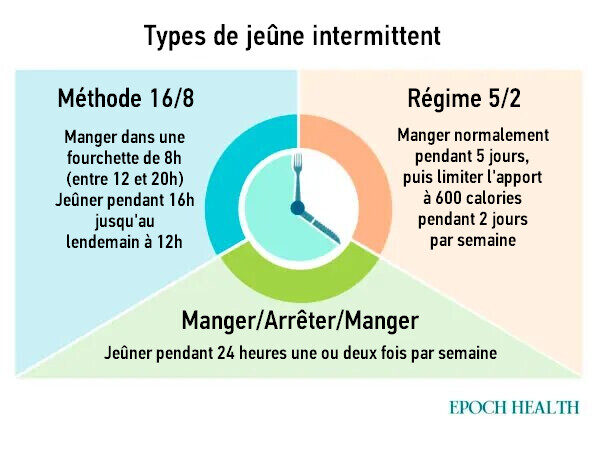 Le jeûne intermittent est un terme générique désignant une alimentation limitée dans le temps, et les adeptes de ce régime peuvent adopter plusieurs approches différentes :