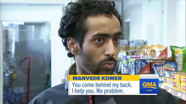 Il se trouve que c’est Manveer Komer, âgé de 25 ans, qui faisait partie de l’équipe de nuit d’une station-service de Philadelphie ce soir-là, le 13 novembre 2015.