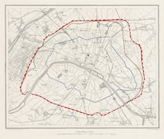 Équipement du Grand Paris en expansion, le périphérique s’est installé sur un territoire que l’on nomme la « ceinture ». Cet espace, qui depuis longtemps articule les destins de Paris et des banlieues, c’est celui des anciennes fortifications dites de Thiers, édifiées entre 1841 et 1844, et de leur « zone » non aedificandi, inconstructible. L’ensemble – murs, bastions, rocades, talus, fossés, zone – délimite une bande de 400 mètres de large. L’enceinte militaire encercle le territoire intra-muros, englobant une partie des communes riveraines de Paris, la « petite banlieue », qui sera annexée fin 1859. La loi sur “l’extension des limites de Paris” consacre les nouveaux contours politiques de la capitale.