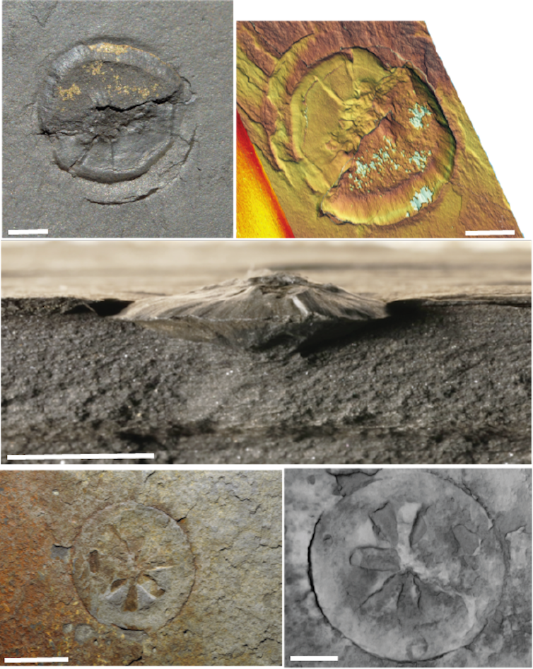C’est au sein de la même formation géologique que l’équipe internationale que je coordonne a découvert l’existence de fossiles de protistes macroscopiques dont la taille peut atteindre 4,5 centimètres. Leur milieu de vie semble avoir été dans l’eau et non sur le fond marin. Ceci est illustré grâce à leur présence dans différents contextes sédimentaires. En plus on constate qu’ils ont agrégé des fines particules argileuses très fines modifiant ainsi leur densité et entraînant leur chute sur le fond océanique.