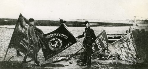 À la suite de la bataille de Varsovie dans la guerre polono-soviétique en 1920, les soldats polonais montrent les drapeaux soviétiques capturés. La bataille de Varsovie a été décisive pour la victoire polonaise dans cette guerre. (Wikimedia Commons)