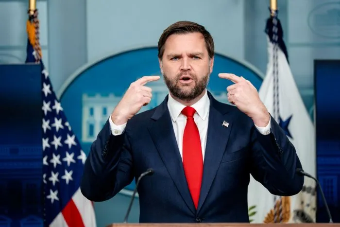 Le vice‑président JD Vance s’adresse aux journalistes lors d’un point de presse à la Maison‑Blanche, le 1er octobre 2025. (Madalina Kilroy/Epoch Times)