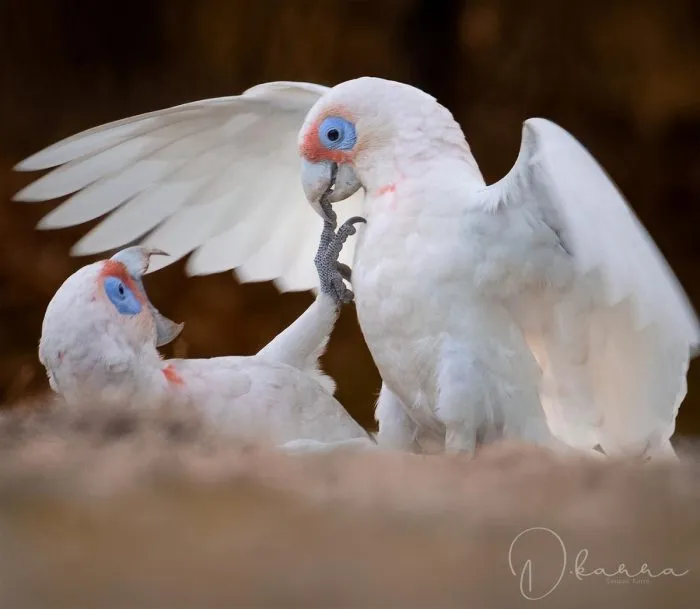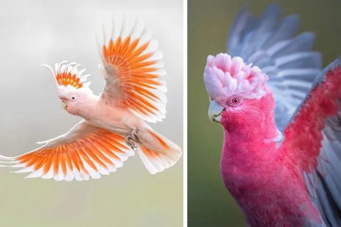 (À g.) Un cacatoès de Major Mitchell (cacatoès de Leadbeater) ; (à dr.) un cacatoès à poitrine rose. (Deepak Karra)