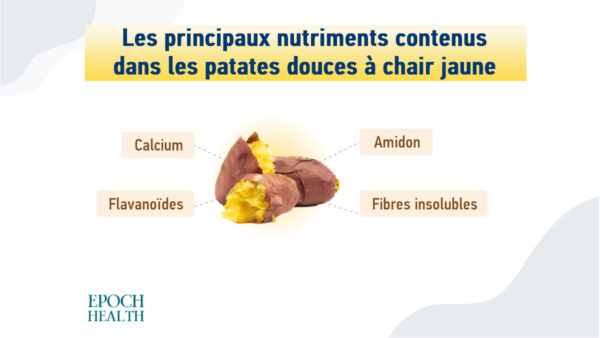 Les patates douces sont riches en amidon. Elles contiennent également beaucoup de fibres, de calcium, de vitamine A, de bêta-carotène et de composés polyphénoliques tels que les flavonoïdes.