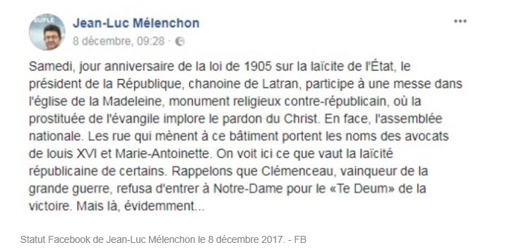 Au sujet de la cérémonie, il sera aussi éloquent que le leader de NPA, dans un tweet où il s’en prendra à Emmanuel Macron pour avoir rendu hommage au chanteur dans une Église, avant-tout un « monument anti-républicain ». Jean-Luc Mélenchon réussira à évoquer le Christ, Marie Antoinette, Clémenceau, Louis XVI dans sa citation, mais oubliera Johnny.