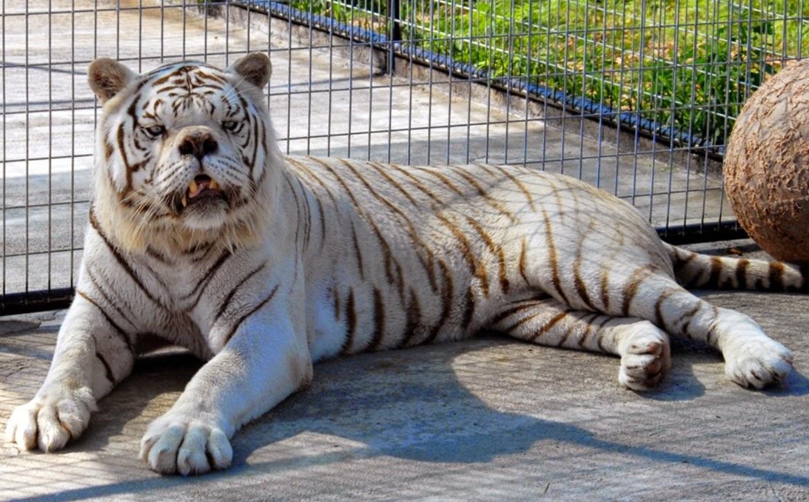 Kenny est l’un des cas les plus tristes que la consanguinité a causés, sa mère et son père étaient frère et soeur et ont été forcés de s’accoupler ensemble en captivité afin de créer un tigre blanc, au profit de leurs propriétaires. Il a donc développé la trisomie. Kenny était connu pour se frapper le visage contre un mur alors qu’il était captif. Cette consanguinité forcée est une chose contre laquelle nous devons prendre des mesures. Kenny était un beau tigre blanc aux yeux bleus, mais il est décédé prématurément d’un cancer en 2008, après avoir vécu quelques années avec le syndrome de trisomie.