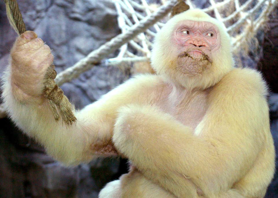 Un gorille à l’allure inhabituelle avec un sourire étrange.