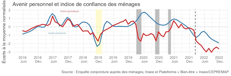 En d’autres termes, la perte de bien-être en 2022 paraît d’abord liée, pour la grande masse des ménages, à des inquiétudes quant à l’avenir.