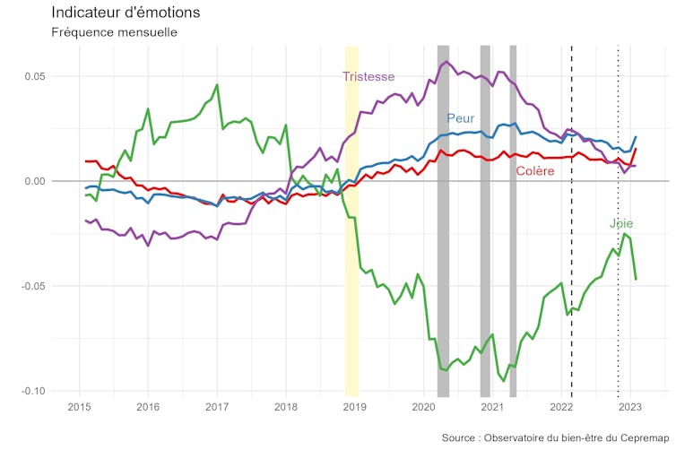 Mathieu Perona, directeur exécutif de l’Observatoire du bien-être du Cepremap, et Claudia Senik, directrice de l’Observatoire, ont rédigé les rapports 2020 et 2021 « Le Bien-être en France ». Le rapport 2022 sera présenté lors d’une conférence en ligne le 21 avril 2023.The Conversation