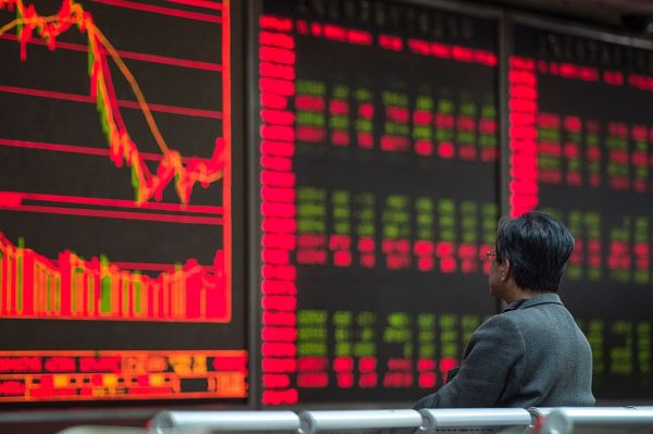 Un investisseur surveille les cours des actions sur les écrans d’une société d’investissement à Pékin, le 22 mars 2016. (Fred Dufour/AFP/Getty Images)