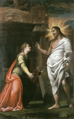 On retrouvera enfin Marie-Madeleine lors de la Passion du Christ, l’accompagnant lors de son chemin de croix, puis se précipitant au tombeau de Jésus après le sabbat. Le trouvant vide, elle courra prévenir les disciples : « Ils ont enlevé le Seigneur du sépulcre, et nous ne savons pas où ils l’ont mis. » Retournant au tombeau, un homme l’interpelle : « Femme, pourquoi pleurez-vous ? Que cherchez-vous ? » Et elle, pensant que c’était le jardinier, lui dit : « Seigneur, si c’est vous qui l’avez enlevé, dites-moi où vous l’avez mis, et je le prendrai. » Jésus lui dit : « Marie ». Marie, s’étant retournée, lui dit : « Rabboni (Maître). » Jésus lui dit: « Ne me touche pas ; car je ne suis pas encore monté vers mon Père. Mais va trouver mes frères, et dis-leur que je monte vers mon Père et votre Père, vers mon Dieu et votre Dieu. » Choisie par Jésus pour être le premier témoin de sa résurrection, Marie-Madeleine sera alors instituée comme « l’apôtre de ses apôtres ».