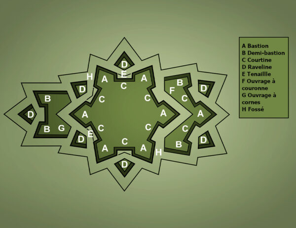 Les fortifications bastionnées ont développé des formes complexes avec des champs de tir imbriqués pour résoudre les nombreuses déficiences des forteresses médiévales dans une nouvelle ère de guerre.