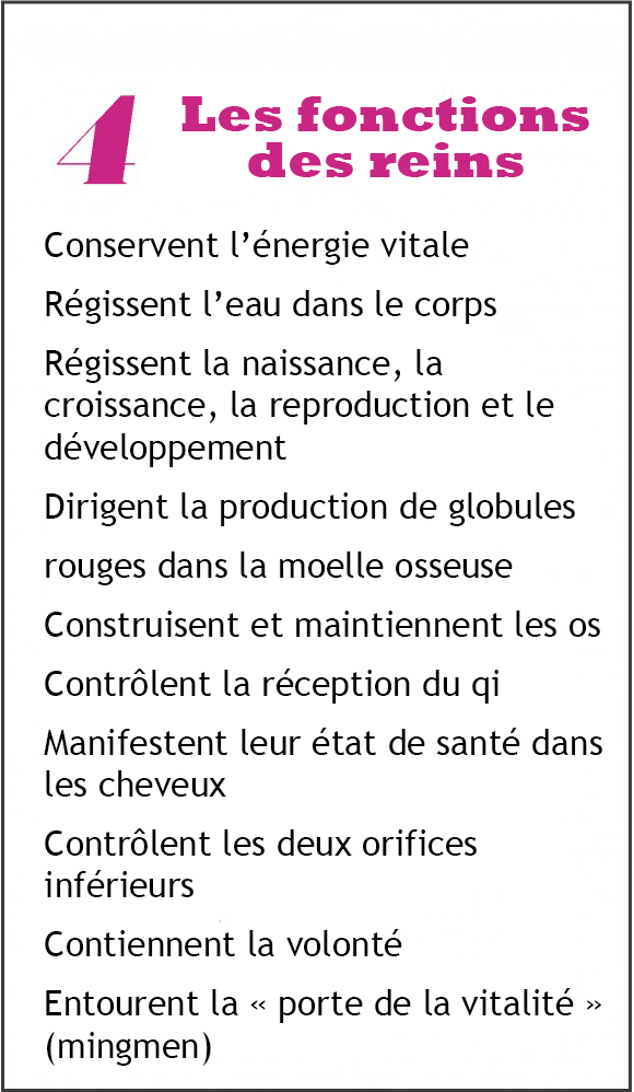 La physiologie moderne considère les reins principalement comme un filtre enlevant le superflu du sang et l’excrétant par l’urine. La médecine chinoise reconnaît également cette fonction filtrante, mais considère ces organes comme possédant un but bien plus profond : conserver et protéger notre essence vitale.