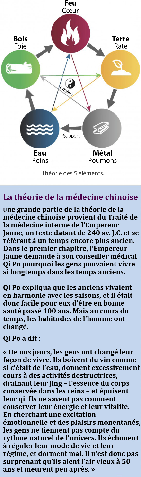 « Pensez à un vieil homme qui est courbé et a besoin d’une canne », compare M. LaGreca. « Il n’a plus de cette droiture du yang pour le maintenir. Particulièrement s’il a eu un rude travail dans sa vie, cela fait partir un peu de ce feu hors de lui. »