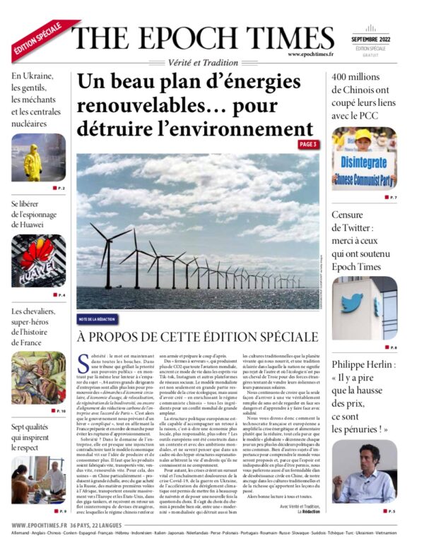 Un beau plan d’énergies renouvelables… pour détruire l’environnement - Nouvelle édition spéciale Epoch Times Septembre 2022