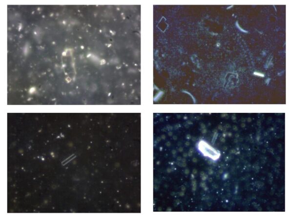 Figure 9 : Cette image du tissu du poumon d’une personne vaccinée révèle une particule biréfringente. Ce type de particules est considéré comme étranger au corps humain. On note la ressemblance frappante avec l’objet de la figure 8, en bas à gauche. (Avec l’aimable autorisation d’Arne Burkhardt et de ses collègues)