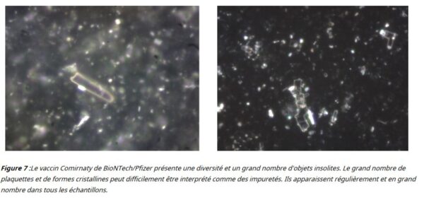 Cependant, les matériaux que le GWG a trouvés ne semblent pas non plus être un accident. Le rapport note que les doses Pfizer en particulier présentent un grand nombre de plaquettes et de formes cristallines qui peuvent « difficilement être interprétées comme des impuretés ».