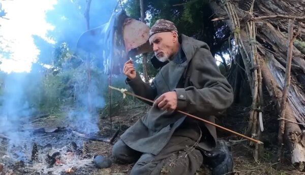 Clay Tall Stories, 59 ans, montre une technique de soufflage pour faire du feu dans une situation de survie. (Avec l’aimable autorisation de Clay Tall Stories)