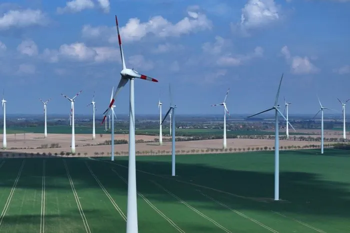 Des éoliennes tournent le 14 avril 2025 près de Nauen, en Allemagne. L’Allemagne continue d’investir massivement dans la production d’énergies renouvelables, notamment éolienne et solaire. Le gouvernement s’est fixé pour objectif de couvrir 80 % des besoins en électricité du pays d’ici 2030 grâce aux énergies renouvelables. (Sean Gallup/Getty Images)