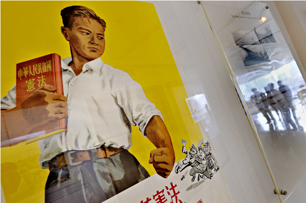 Une affiche de propagande de l’époque de la Révolution culturelle exposée lors d’une exposition à Shanghai, le 8 octobre 2009. (Philippe Lopez / AFP / Getty Images)